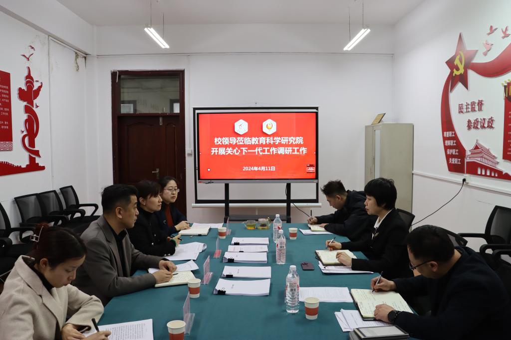 2024年4月11日上午,校关工委调研组第五组成员校学生工作部部长刘凤影、研究生院党委副书记朱毅、离退休工作处文化与活动服务科副科长董贺熙一行到教育科学研究院进行深入调研和具体指导。教育科学研究院党总支书记綦明霞、党总支副书记屈广宁、副院长佟玉英、组织员刘锐参加会议。