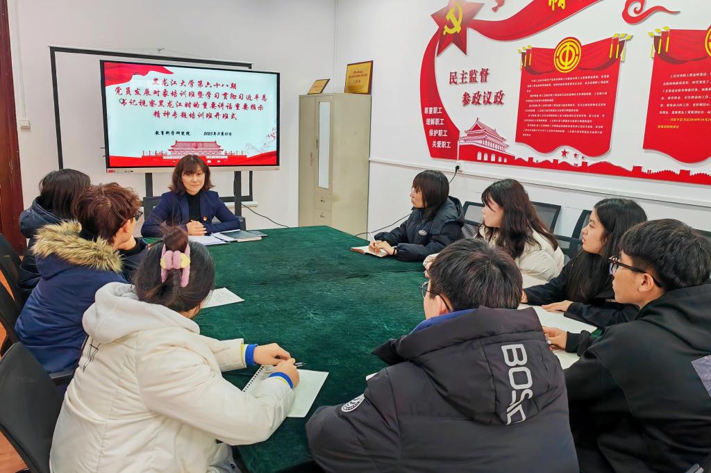 第六十八期党员发展对象培训班暨学习贯彻习近平总书记视察黑龙江时的重要讲话重要指示精神专题培训班的通知》要求,教育科学研究院于2023年11月10日15时,在汇文楼959会议室举办乐鱼