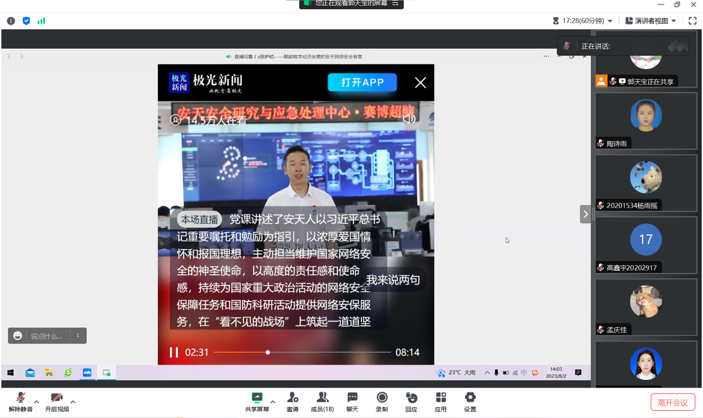 一分部署,九分落实,一份责任,永存心间。当今时代,互联网发展日新月异,信息化浪潮席卷全球,网信工作逐步成为国家重点工作之一。安天不易,安全更艰。作为一名学生党员,更要充分发挥榜样带头作用,进一步提高政治站位,强化责任担当,深刻把握网信工作的特殊地位和重要使命,同时,以自身理论体系为基础,广泛宣传网络安全教育,提升周边同学的网络风险防范能力,形成思想上的“同频共振”,网络安全,护航有我!