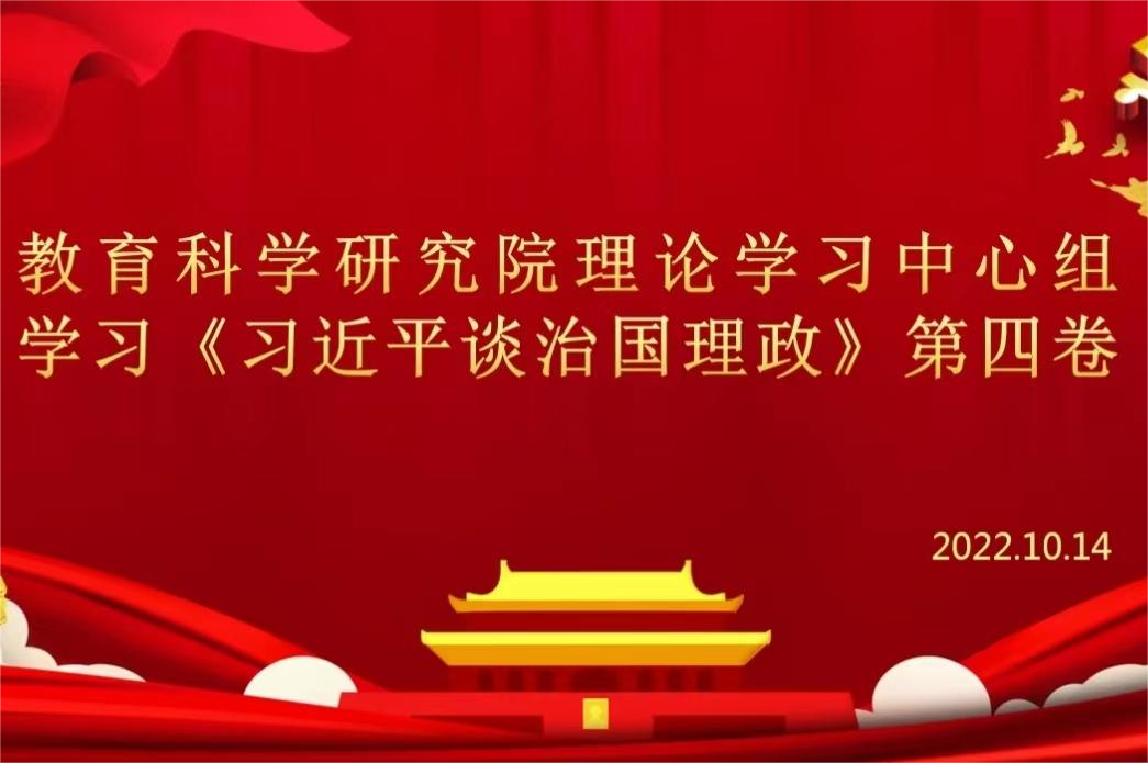 2022年10月14日19时,教育科学研究院党总支理论学习中心组于线上开展专题学习,学习内容主要为《习近平谈治国理政》第四卷和全国教书育人楷模杨士莪先进事迹,本次学习由教育科学研究院教育行政联合党支部书记徐建华领学,理论学习中心组全体成员参加,院长王世红列席,会议由乐鱼