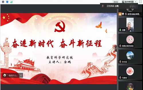 党总支书记金鹏开展了《奋进新时代,奋斗新征程》主题党课,全体教师党员参加学习。