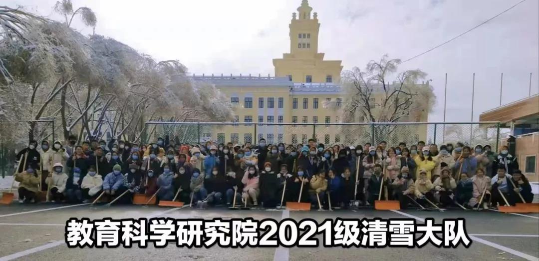大学生树立劳动意识、弘扬奉献、友爱、互助、进步的青年志愿者精神,营造一个洁净、舒适、安全、美丽的校园环境,教育科学研究院2021级于2021年11月11日开展清扫积雪志愿活动。