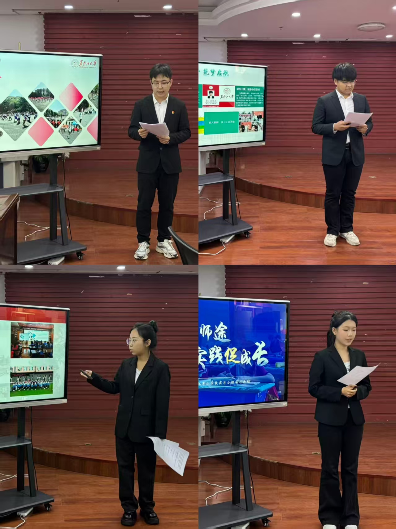 的教学实践、班级管理、师生互动等方面的经历与感悟。实习代表们谈到,从初登讲台的紧张到逐渐掌握课堂节奏,他们通过参与班级管理、课程设计,深刻体会到理论知识与实践结合的重要性,不仅提升了教学技能,更学会了如何与实习指导老师进行沟通,准确把握学生需求。其他实习学生也纷纷表示,实习期间,他们在教学实践、团队协作、问题解决等方面得到了全方位锻炼,对教育行业有了更直观且深刻的认识,明确了未来的职业发展方向。