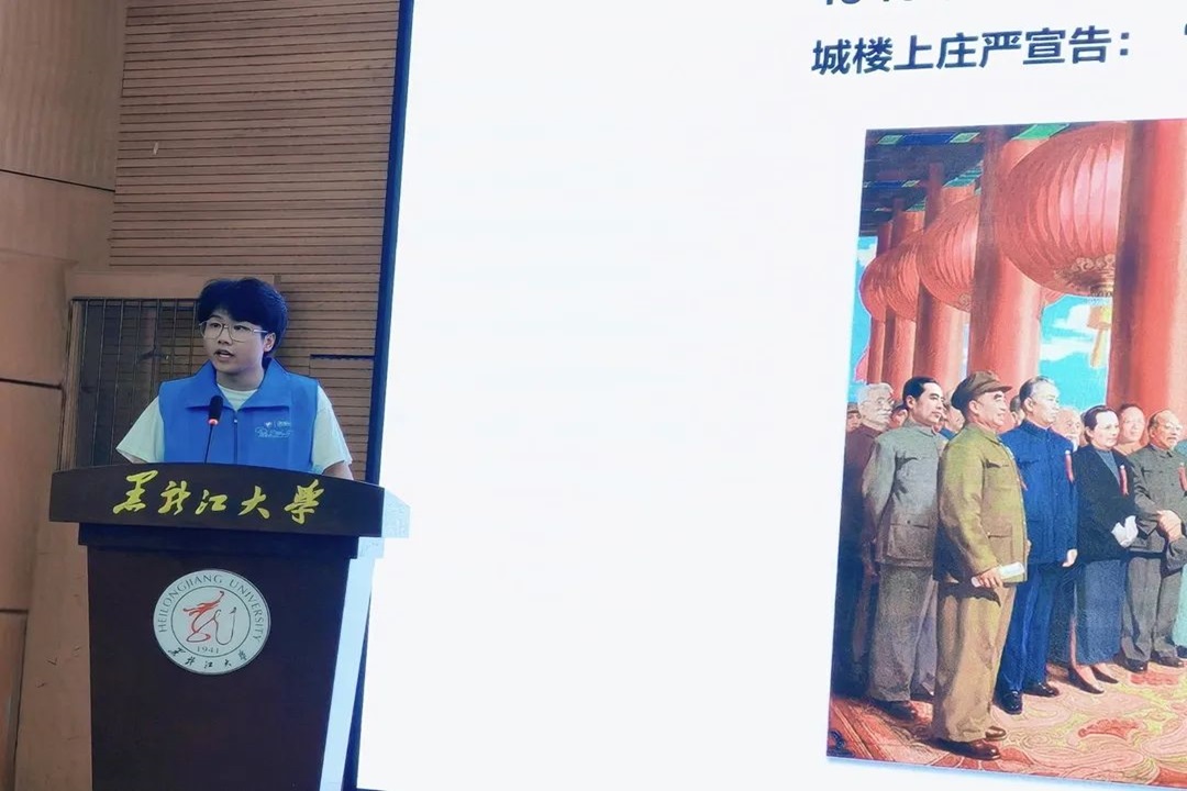 刘美彤同学以《根于延安,我把黑大的故事讲给你听》为题进行宣讲。延安精神不仅是一种定义,更是一种信仰,她带领同学们重温风雨如磐、革命危急的岁月,呼吁同学们应传承延安精神,展现青春作为、彰显青春活力、尽显青春风采。