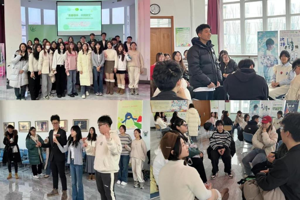 号召,开展以“青春相伴,共同防艾”为主题的青春健康同伴团体活动。本次活动带领同学们深刻体验艾滋病传播的来源、速度、途径以及被感染者内心的真实感受,有效地促进了同学们对于艾滋病病毒的认识以及对被感染者的理解。