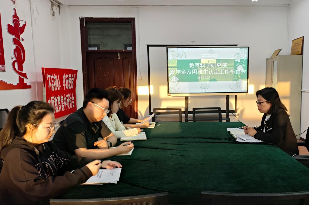高度重视,严格按照认定办法开展工作,成立认定工作领导小组。2023年9月27日,院领导小组召开专项工作会议,制定《教育科学研究院2023-2024学年家庭经济困难学生认定实施细则》,确定家庭经济困难学生认定评议小组、互评小组、寝室评议小组名单,参照学生申请材料、日常消费、操行表现等情况严格进行民主评议及量化打分,确保家庭经济困难学生认定工作有序推进、公开透明。