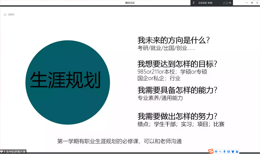 首先,张坤同学向新生们强调了确立目标的重要性,唯有心中的指向灯长明,大学生活才不会迷茫。尽早确立目标,制订生涯规划,正确的认识自己,选择适合自己的方向,不虚度光阴,始终朝着目标前进,这样才能满载而归。此外,张坤同学表示不可忽视大学的学习生活,潜心学习,耐心沉淀,终会有所收获。