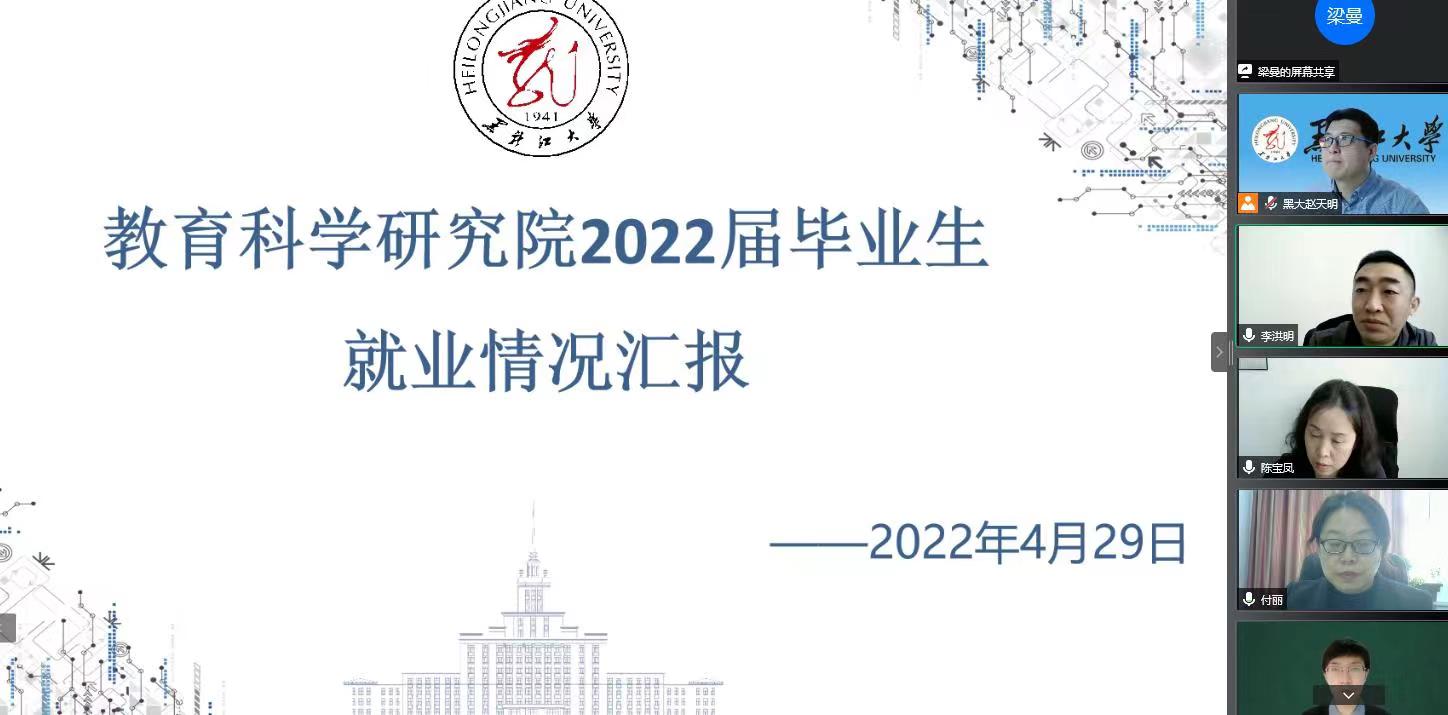 于2022年4月29日开展教育科学研究院线上就业走访调研工作。校党委副书记丁宏、招生就业指导中心主任陈宝凤、副主任李洪明、綦明霞及中心教师调研指导乐鱼