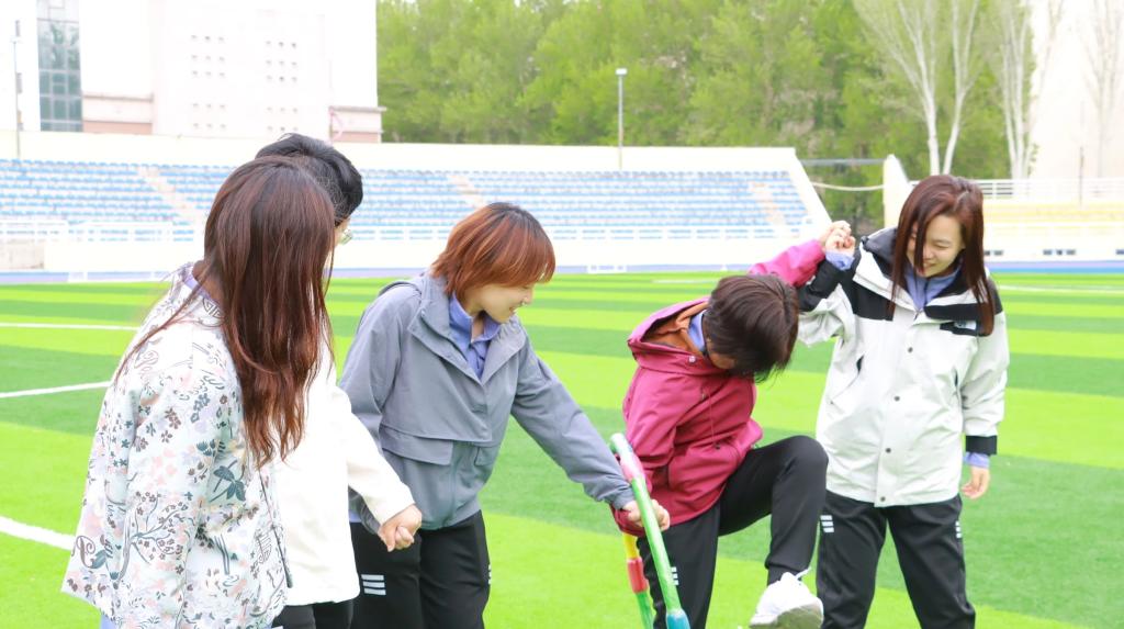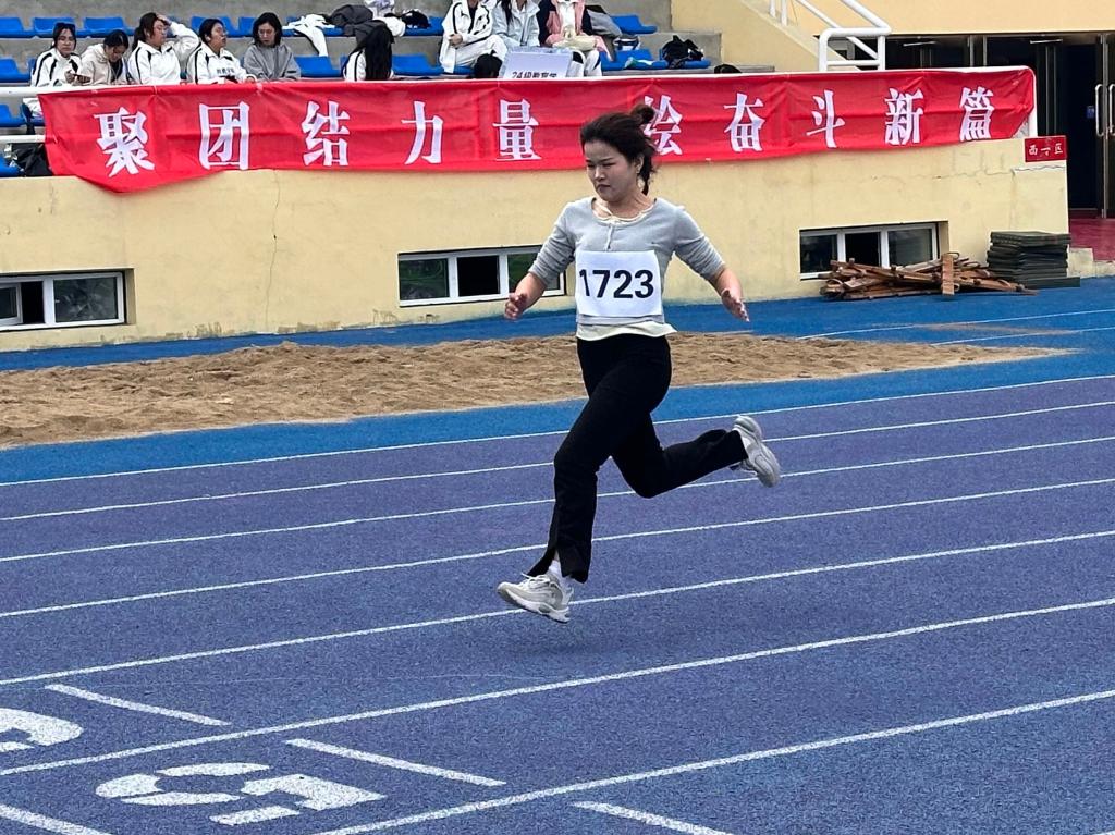 跳远凌空、铅球破风,力量在空中刻下拼搏弧线;单杠咬牙引体、垫上仰卧起坐,汗水浸透衣衫,却浇不灭超越自我的倔强。五人板鞋竞速,步伐同频踏出“教育节奏”;八字跳大绳,跃动的身影串起欢声笑语;脚尖轻点彩毽,传统玩法踢出新意。胜负之外,默契与笑容才是赛场的终极答案。三尺讲台外,老师们化身运动健将,接力赛中稳中求胜,师生同台竞技,拉近心与心的距离。