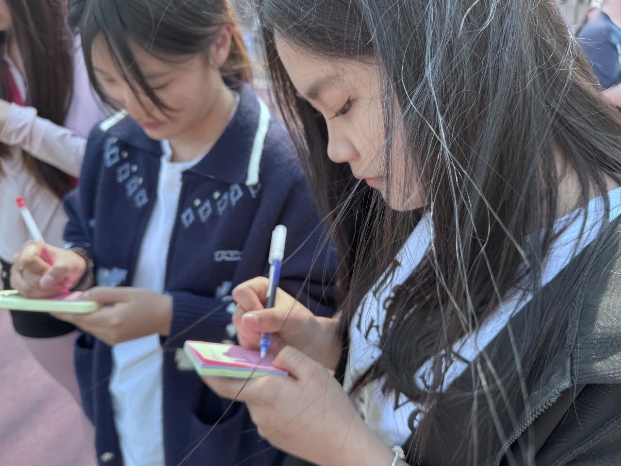 展板琳琅呈画卷,清风漫漫暖情牵。参与者领取便利贴,写下对未来的期许或对母亲的祝福,并张贴在展板上,形成一道承载美好愿景的风景线。