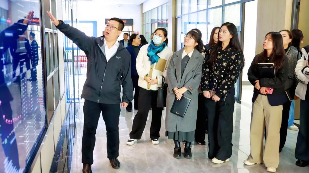 在产学研教育基地参观环节,与会成员实地体验了“三位一体”协同育人体系。该体系贯通“顶层设计—中层教学—基层实践”,打破传统育人壁垒,构建起分层实施、交叉融合的一体化培养新格局。在心理健康教育中心,李巾英主任引导调研团依次参观沙盘治疗室、情绪宣泄室等功能区域,详细介绍了个体心理咨询、心理测评等服务内容,展现了学生心理健康教育方面的专业支持体系。在大学生就业指导中心,就业指导部于航老师介绍了以“课、赛、咨询”为一体化的就业指导体系,重点演示了职业生涯咨询特色工作室的8个实验室。在师生创客中心,院长闫隽向与会人员展示了学生创业团队的运行机制、已孵化项目成果,以及乐鱼